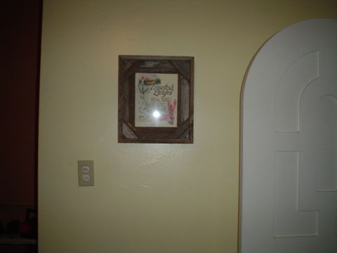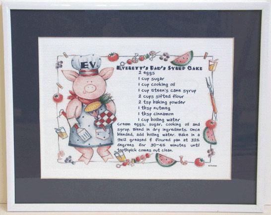 Hier soir, je les ai enfin installés dans ma cuisine. J’en ai mis cinq au total. Deux sont dans des cadres en bois et les trois autres ressemblent davantage à la photo de recette ci-dessus. L’un d’eux est en fait pour mon amie Delia, à qui ma mère a également offert une recette encadrée pour Noël. Elle a reçu une version encadrée de sa recette préférée : le Corn Crab Bisque (bisque de crabe au maïs) :-D