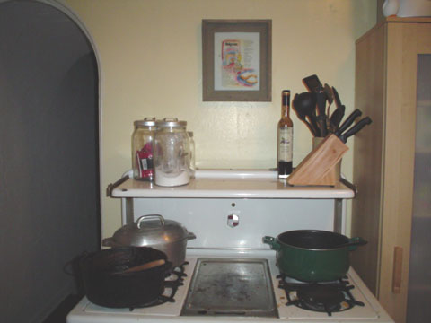 Pardonnez la cuisinière sale — cette photo a été prise juste après avoir préparé une quantité gigantesque de roux et de petite pois (petits pois cajuns). Mes colocataires ont également préparé des pâtes italiennes ce soir-là. En parlant de mes colocataires, ils adorent les nouvelles photos et trouvent que notre maison a l’air plus chaleureuse maintenant.